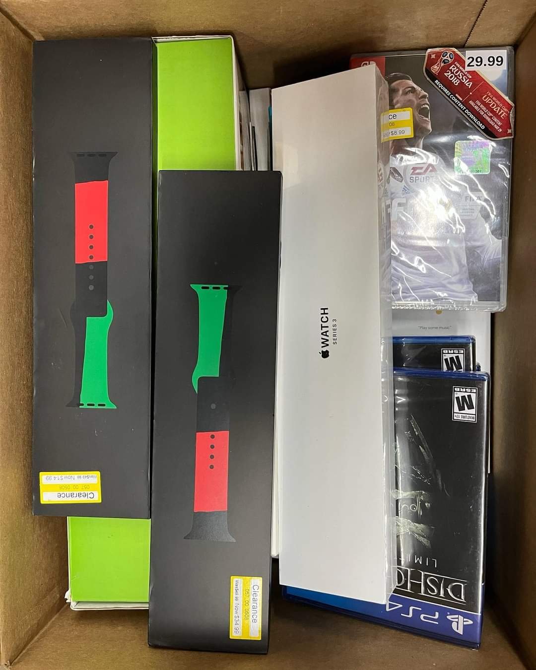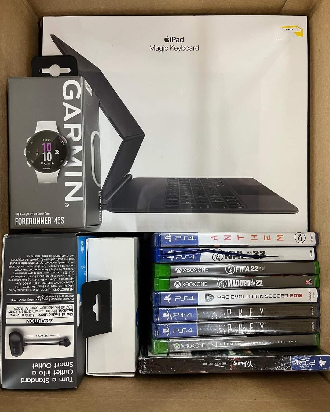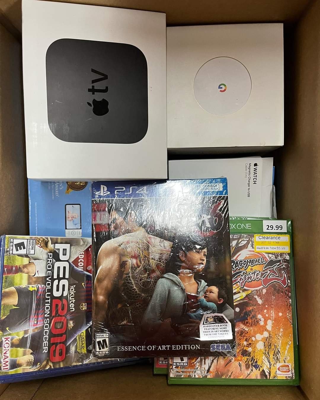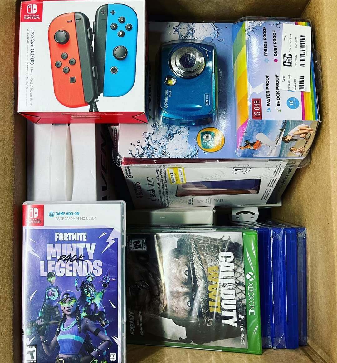 The Amazon electronic mystery box contains a lot of electronics such as iPhones, airpods, controllers, music players charger ps5 and many other accessories
